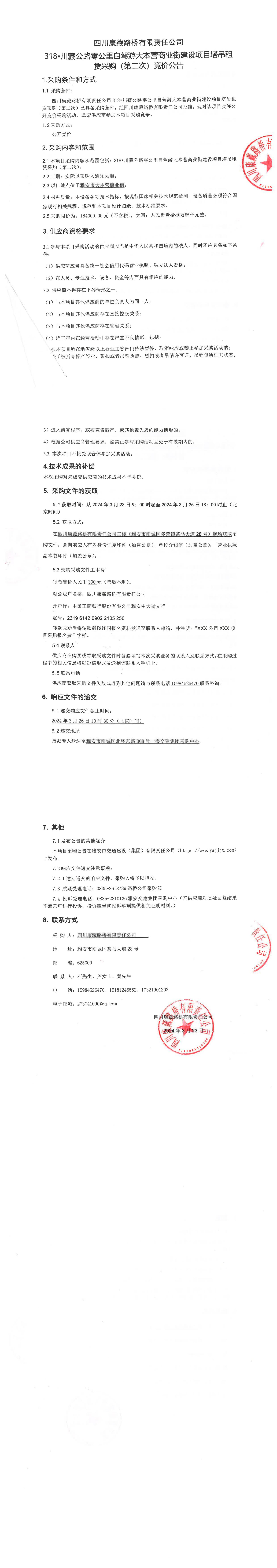 四川康藏路橋有限責(zé)任公司318•川藏公路零公里自駕游大本營商業(yè)街建設(shè)項目塔吊租賃采購(第二次)競價公告