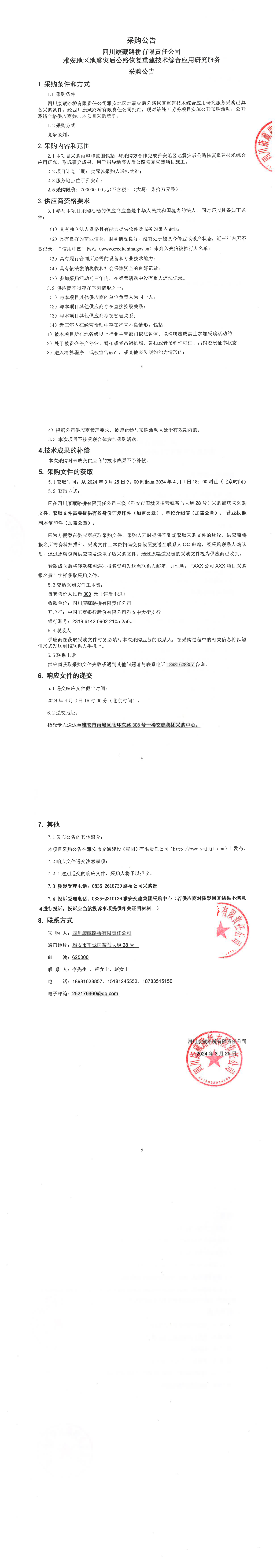 四川康藏路橋有限責任公司雅安地區(qū)地震災后公路恢復重建技術綜合應用研究服務采購公告