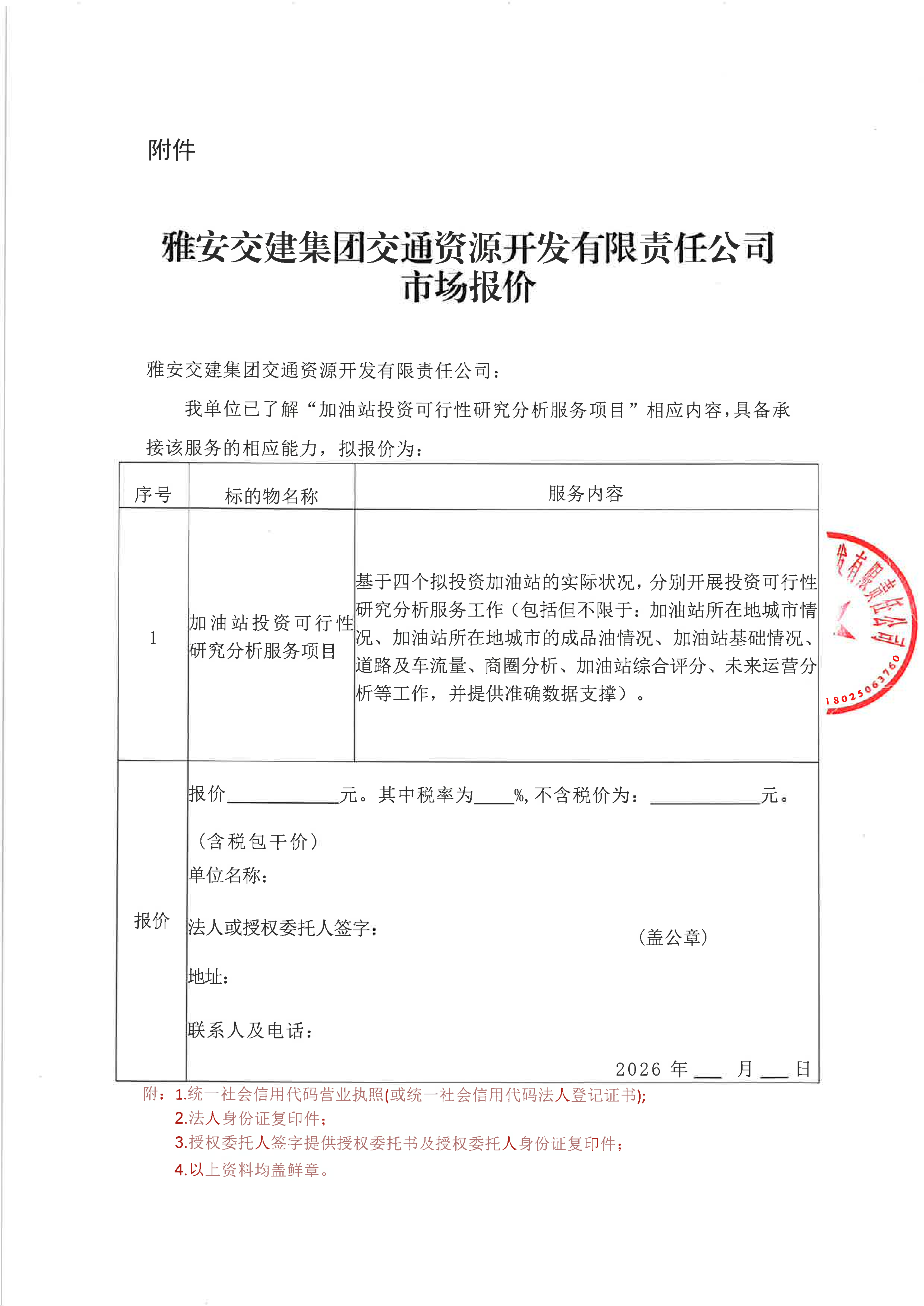 雅安交建集團交通資源開發(fā)有限責(zé)任公司加油站投資可行性研究分析服務(wù)項目市場調(diào)查公告