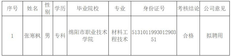 根據(jù)《雅安交建集團(tuán)康居建設(shè)工程質(zhì)量與室內(nèi)環(huán)境污染檢測(cè)有限公司綜合考核聘用工作方案》,按照“公開(kāi)、平等、競(jìng)爭(zhēng)、擇優(yōu)”的原則,經(jīng)考核合格,現(xiàn)將我公司擬聘用人員名單予以公示: