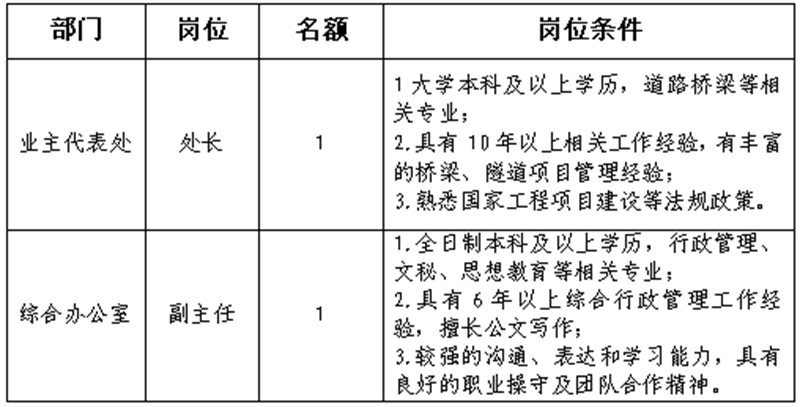 根據發(fā)展需要,決定面向社會公開招聘雅安市交通建設(集團)有限責任公司(以下簡稱“雅安交建集團”)所屬子公司相關人員2名,現將有關事項公告如下: