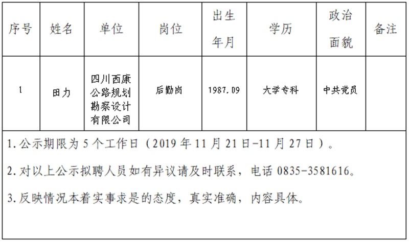 雅安交建集團(tuán)子公司擬聘用人員公示(勘察設(shè)計(jì)公司)
