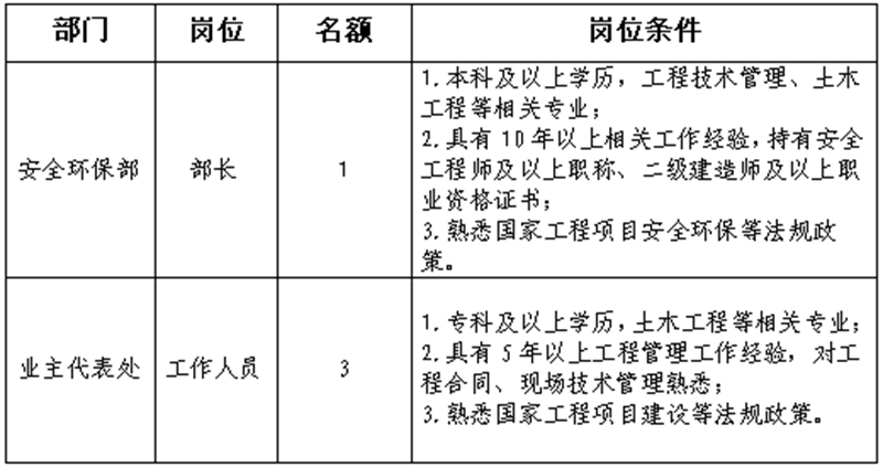 根據(jù)發(fā)展需要,決定面向社會公開招聘雅安市交通建設(shè)(集團)有限責任公司(以下簡稱“雅安交建集團”)所屬子公司相關(guān)人員4名,現(xiàn)將有關(guān)事項公告如下: