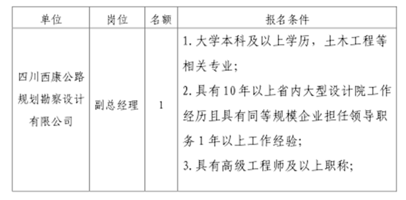 1.報名。公告發(fā)布在雅安市交通建設(集團)有限責任公司門戶網站,自發(fā)布之日起即可報名,截止時間為2019年7月5日18:00。網上報名,報名者須如實填寫《報名登記表》。 網上報名,在規(guī)定時間內將填寫好的《報名登記表》、本人有效身份證、畢業(yè)證、職稱、執(zhí)業(yè)資格及工作業(yè)績等證明材料以電子文檔的形式發(fā)送至郵箱2018523008@qq.com(姓名+應聘公司名稱+應聘工作崗位)。咨詢電話:0835-5897859。