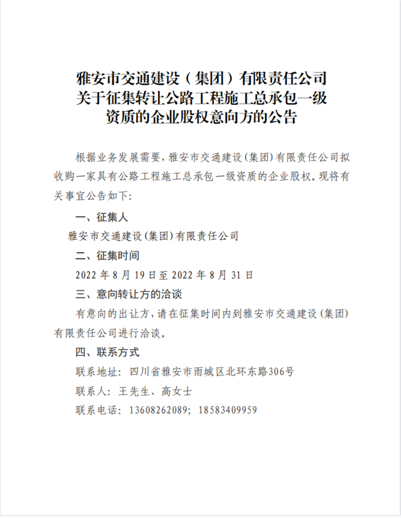 êP(gu¨¡n)ÓÚÕ÷¼¯ÞD(zhu¨£n)׌¹«Â·¹¤³ÌÊ©¹¤¿‚³Ð°üÒ»¼‰ÙYÙ|(zh¨¬)µÄÆó˜I(y¨¨)¹É™à(qu¨¢n)ÒâÏòºÏ×÷·½µÄ¹«¸æ
