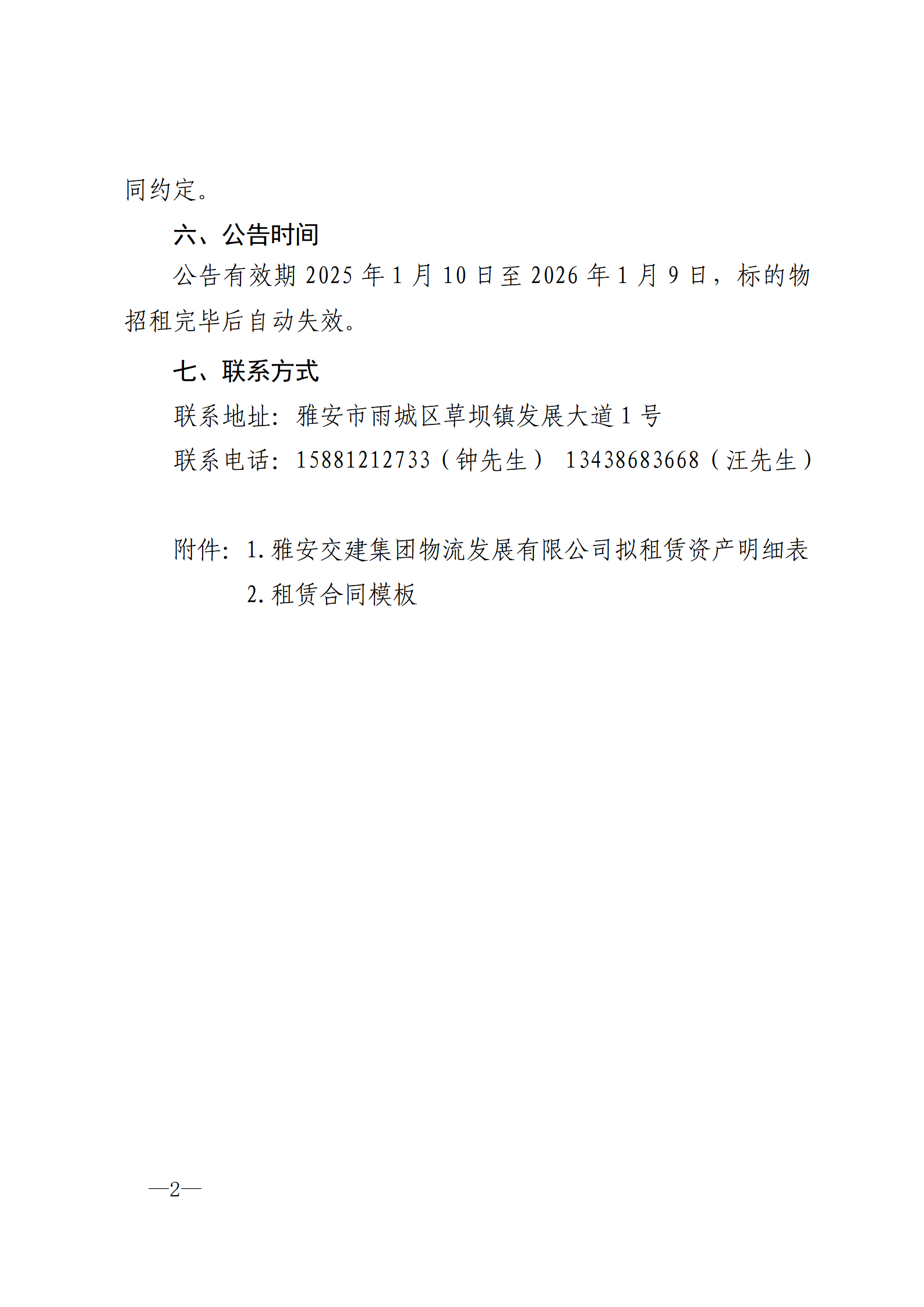 雅安交建集團(tuán)物流發(fā)展有限公司 關(guān)于房屋、場(chǎng)地、倉(cāng)庫(kù)公開(kāi)招租的公告