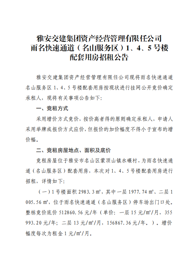 ÑŰ²½»½¨¼¯ˆF(tu¨¢n)ÙY®a(ch¨£n)½›(j¨©ng) I¹ÜÀíÓÐÏÞÈι«Ë¾ ÓêÃû¿ìËÙͨµÀ£¨Ãûɽ·þ„Õ(w¨´)…^(q¨±)£©1¡¢4¡¢5Ì–(h¨¤o)˜Ç ÅäÌ×Ó÷¿ÕÐ×⹫¸æ