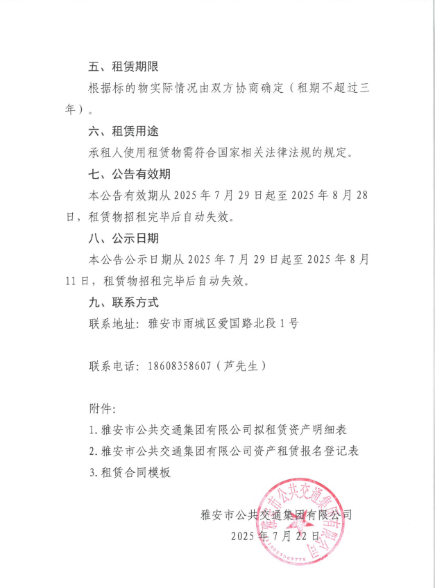 關于雅安市公共交通集團有限公司共計兩處辦公用房進行掛網(wǎng)招租的公告