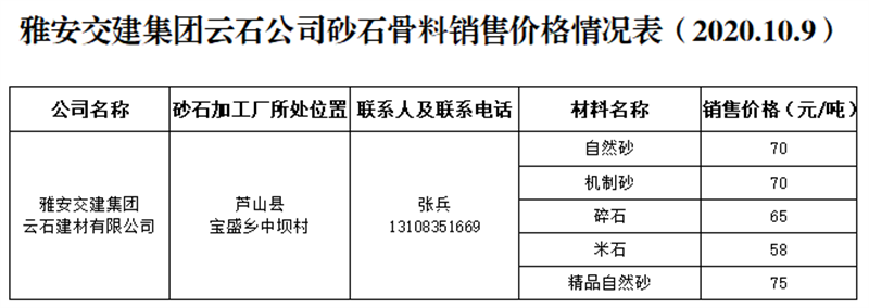ÑŰ²½»½¨¼¯ˆF(tu¨¢n)ÔÆÊ¯¹«Ë¾É°Ê¯¹ÇÁÏäN(xi¨¡o)ÊÛƒr(ji¨¤)¸ñÇé›r±í£¨2020.10.9£©