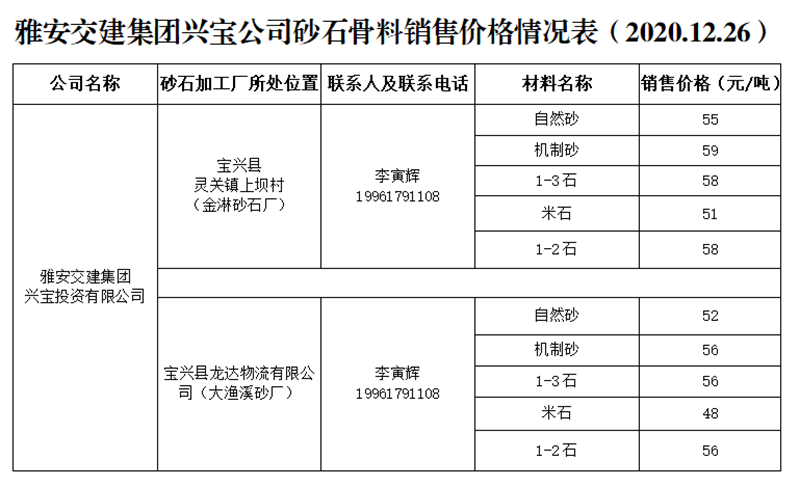 ÑŰ²½»½¨¼¯ˆF(tu¨¢n)ÅdŒš¹«Ë¾É°Ê¯¹ÇÁÏäN(xi¨¡o)ÊÛƒr(ji¨¤)¸ñÇé›r±í£¨2020.12.26£©